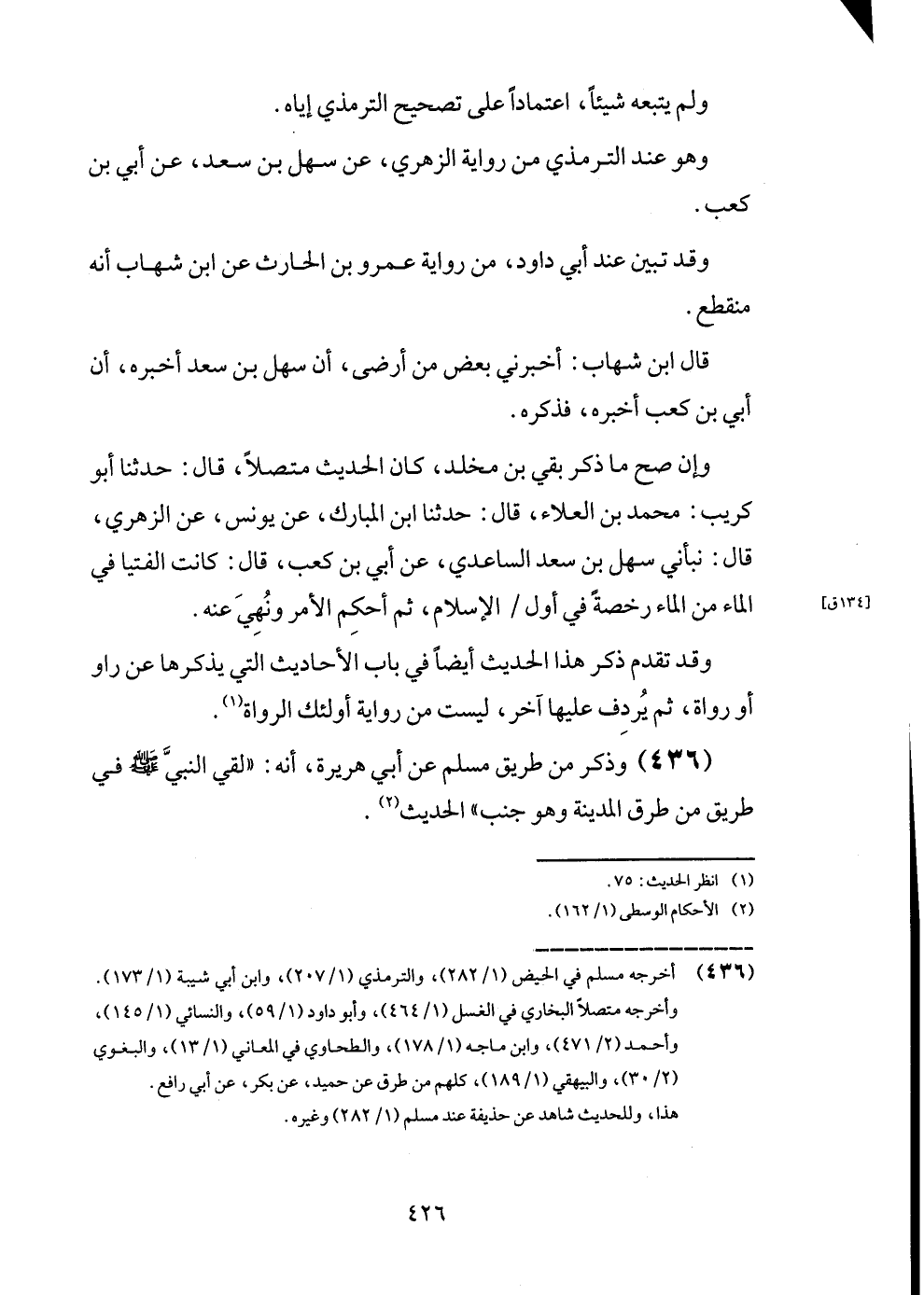 (436) وَذكر من طَرِيق مُسلم عَن أبي هُرَيْرَة، أَنه: " لَقِي النَّبِي - صَلَّى اللَّهُ عَلَيْهِ وَسَلَّم َ - فِي طَرِيق من طرق الْمَدِينَة وَهُوَ جنب " الحَدِيث.