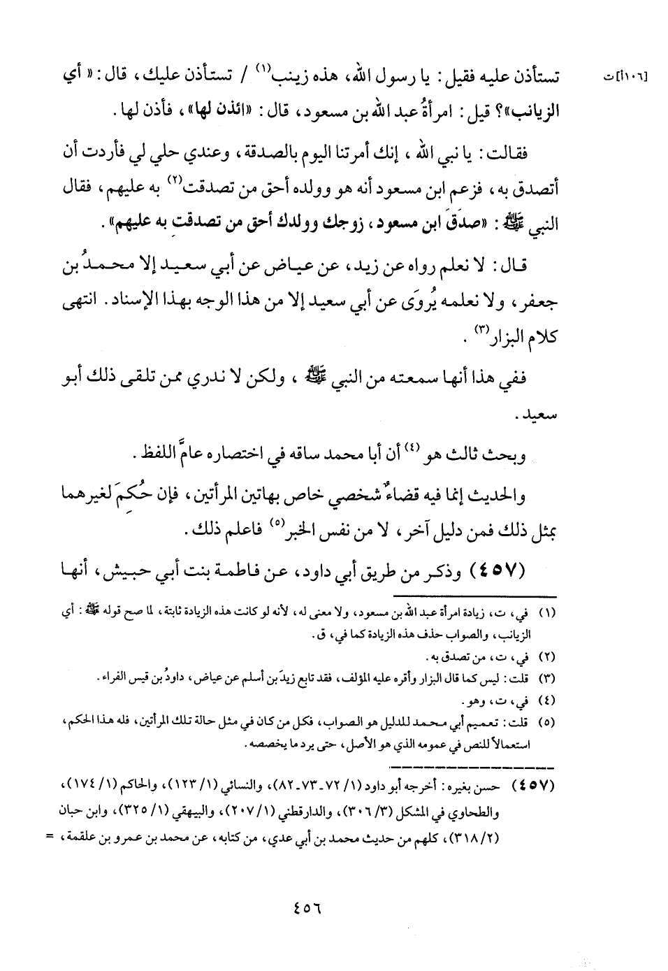 (457) وَذكر من طَرِيق أبي دَاوُد، عَن فَاطِمَة بنت أبي حُبَيْش، أَنَّهَا