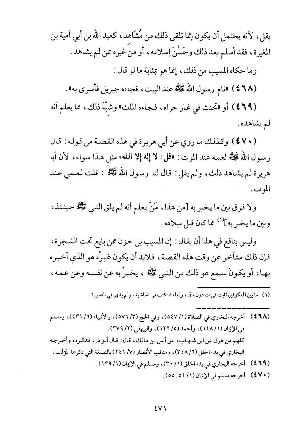 يقل، لِأَنَّهُ يحْتَمل أَن يكون إِنَّمَا تلقى ذَلِك من مشَاهد، كَعبد الله بن أبي أُميَّة بن الْمُغيرَة، فقد أسلم بعد ذَلِك وَحسن إِسْلَامه، أَو من غَيره مِمَّن لم يُشَاهد.