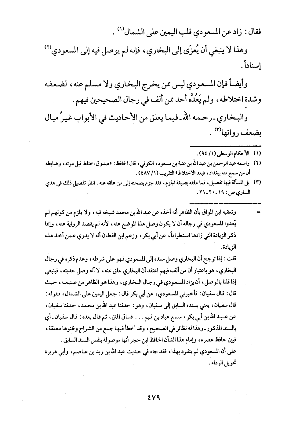وَهَذَا لَا يَنْبَغِي أَن يعزى إِلَى البُخَارِيّ، فَإِنَّهُ لم يُوصل فِيهِ إِلَى المَسْعُودِيّ إِسْنَادًا.