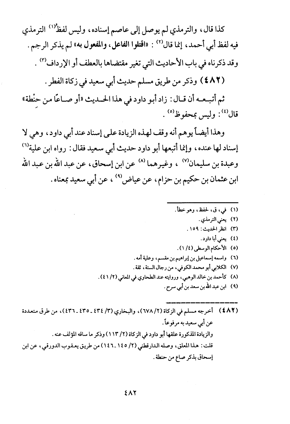 (482) وَذكره من طَرِيق مُسلم حَدِيث أبي سعيد فِي زَكَاة الْفطر.