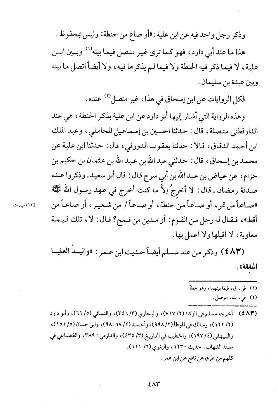 (483) وَذكر من عِنْد مُسلم أَيْضا حَدِيث ابْن عمر: " وَالْيَد الْعليا المنفقة ".