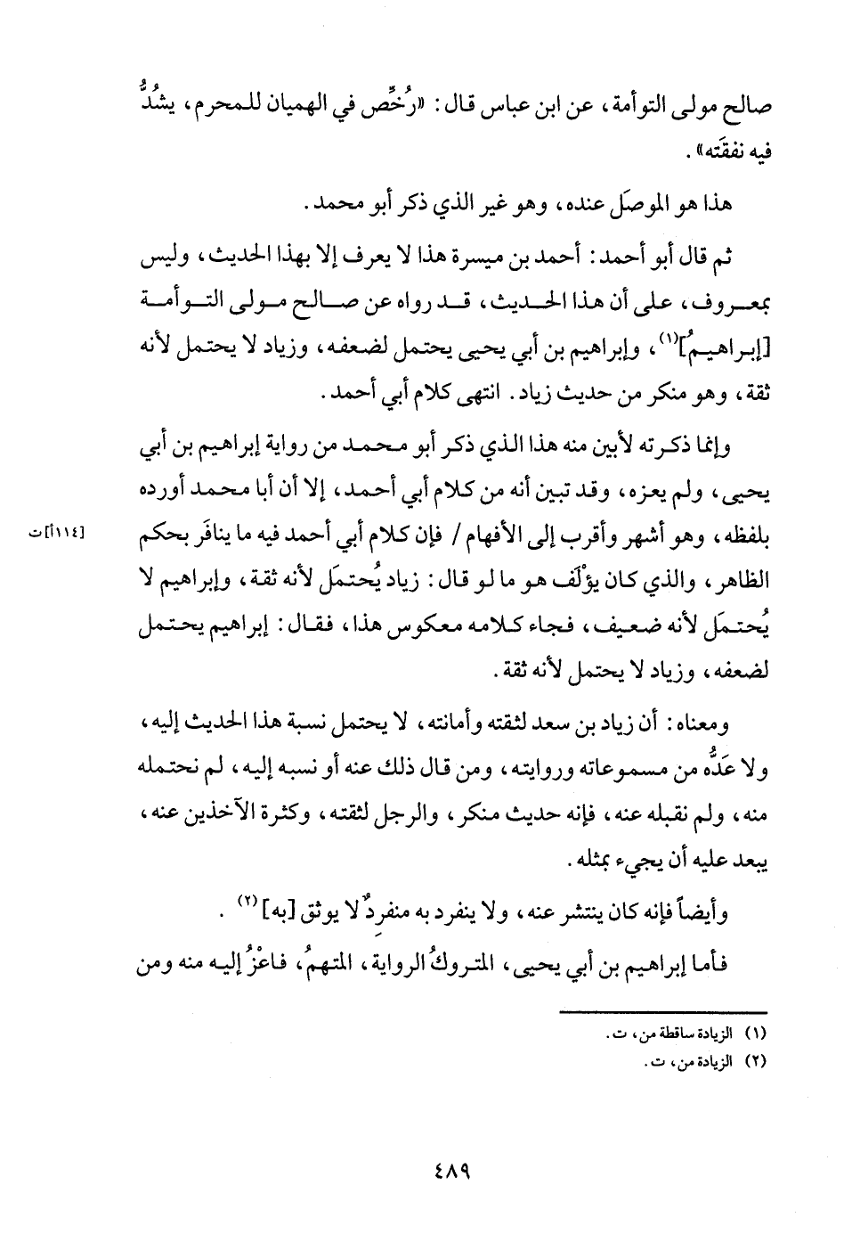 وَإِنَّمَا ذكرته لأبين مِنْهُ هَذَا الَّذِي ذكر أَبُو مُحَمَّد من رِوَايَة إِبْرَاهِيم بن أبي يحيى، وَلم يعزه، وَقد تبين أَنه من كَلَام أبي أَحْمد، إِلَّا أَن أَبَا مُحَمَّد أوردهُ بِلَفْظِهِ، وَهُوَ أشهر وَأقرب إِلَى الإفهام / فَإِن كَلَام أبي أَحْمد فِيهِ مَا ينافر بِحكم الظَّاهِر، وَالَّذِي كَانَ يؤلف هُوَ مَا لَو قَالَ: زِيَاد يحْتَمل لِأَنَّهُ ثِقَة، وَإِبْرَاهِيم لَا يحْتَمل لِأَنَّهُ ضَعِيف، فجَاء كَلَامه معكوس هَذَا، فَقَالَ: إِبْرَاهِيم يحْتَمل لضَعْفه، وَزِيَاد لَا يحْتَمل لِأَنَّهُ ثِقَة.