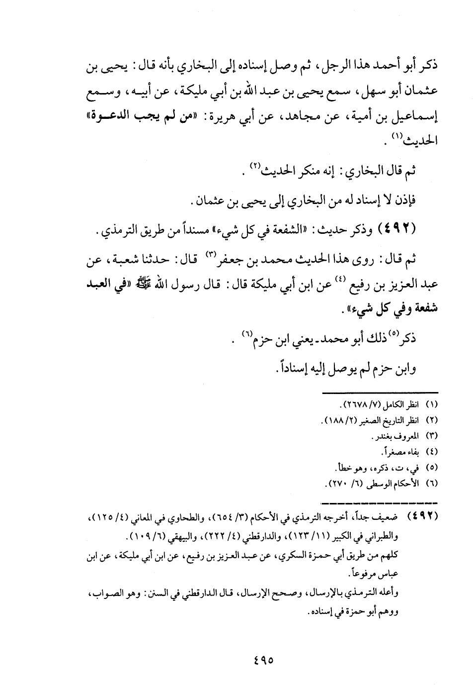 (492) وَذكر حَدِيث: " الشُّفْعَة فِي كل شَيْء " مُسْندًا من طَرِيق التِّرْمِذِيّ.