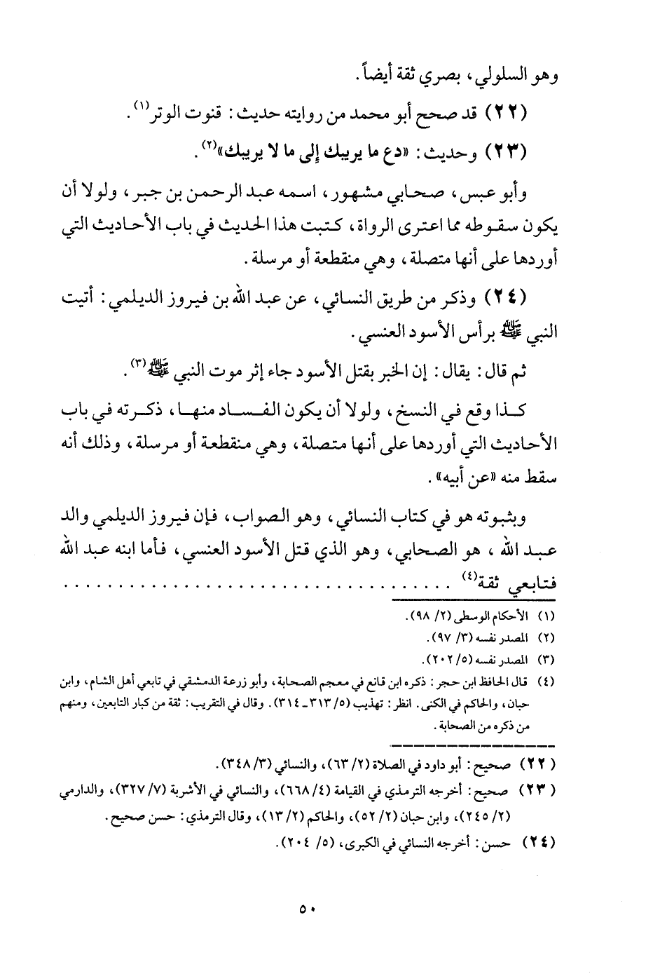 (24) وَذكر من طَرِيق النَّسَائِيّ، عَن عبد الله بن فَيْرُوز الديلمي: أتيت النَّبِي - صَلَّى اللَّهُ عَلَيْهِ وَسَلَّم َ - بِرَأْس الْأسود الْعَنسِي.