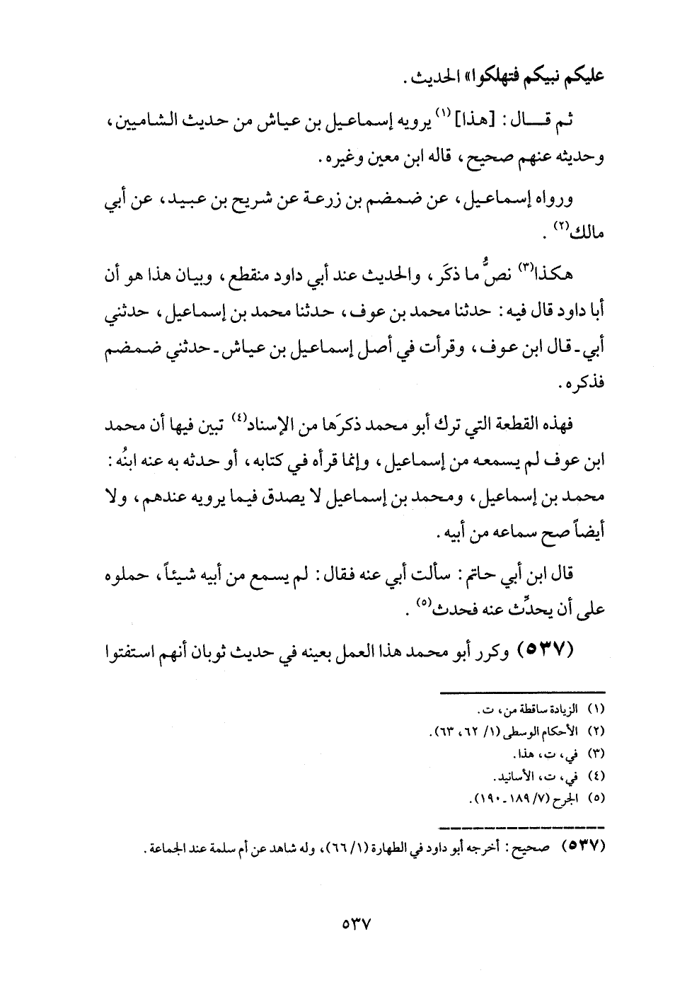 (537) وَكرر أَبُو مُحَمَّد هَذَا الْعَمَل بِعَيْنِه فِي حَدِيث ثَوْبَان أَنهم استفتوا