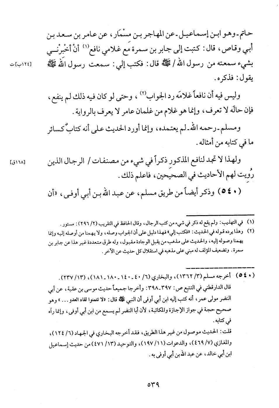 (540) وَذكر أَيْضا من طَرِيق مُسلم، عَن عبد الله بن أبي أوفى، " أَن