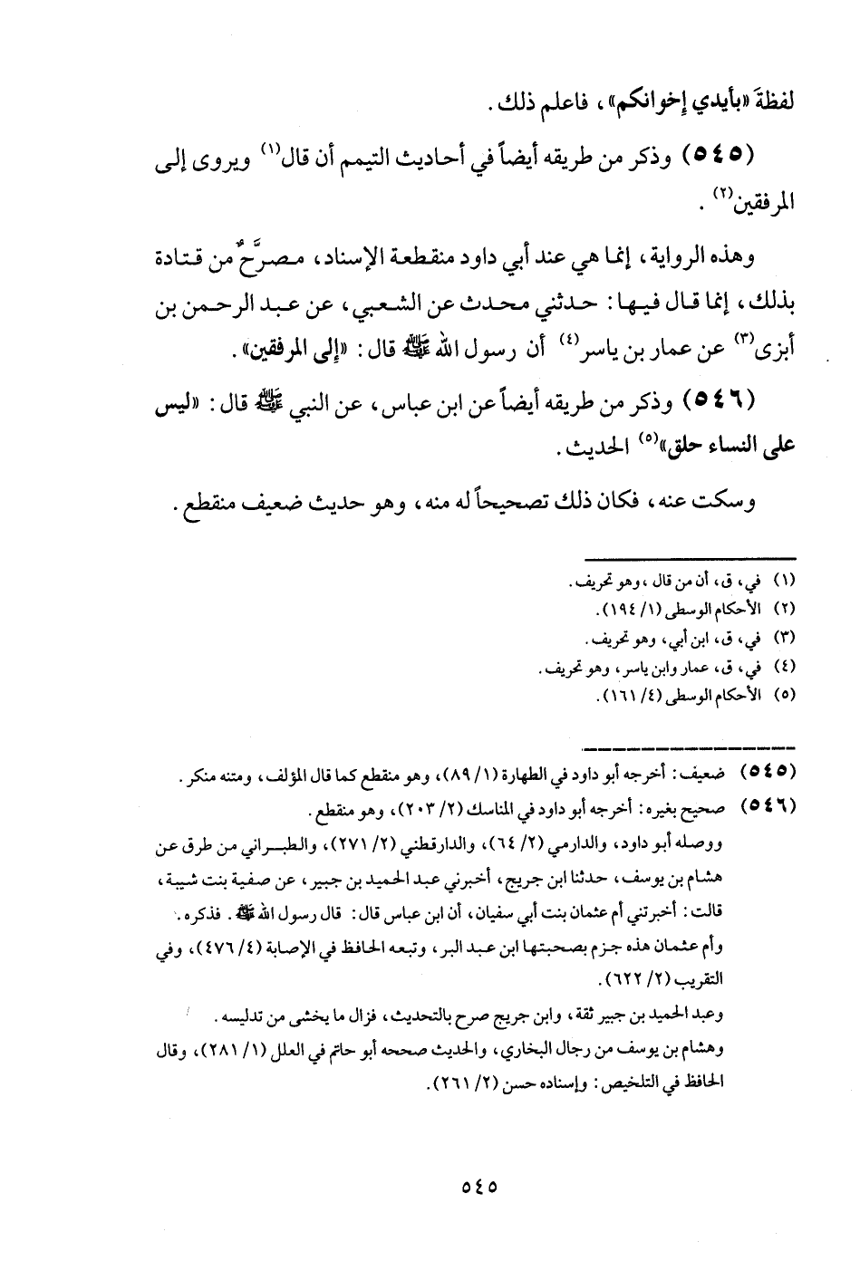 (545) وَذكر من طَرِيقه أَيْضا فِي أَحَادِيث التَّيَمُّم أَن قَالَ ويروى إِلَى الْمرْفقين.
