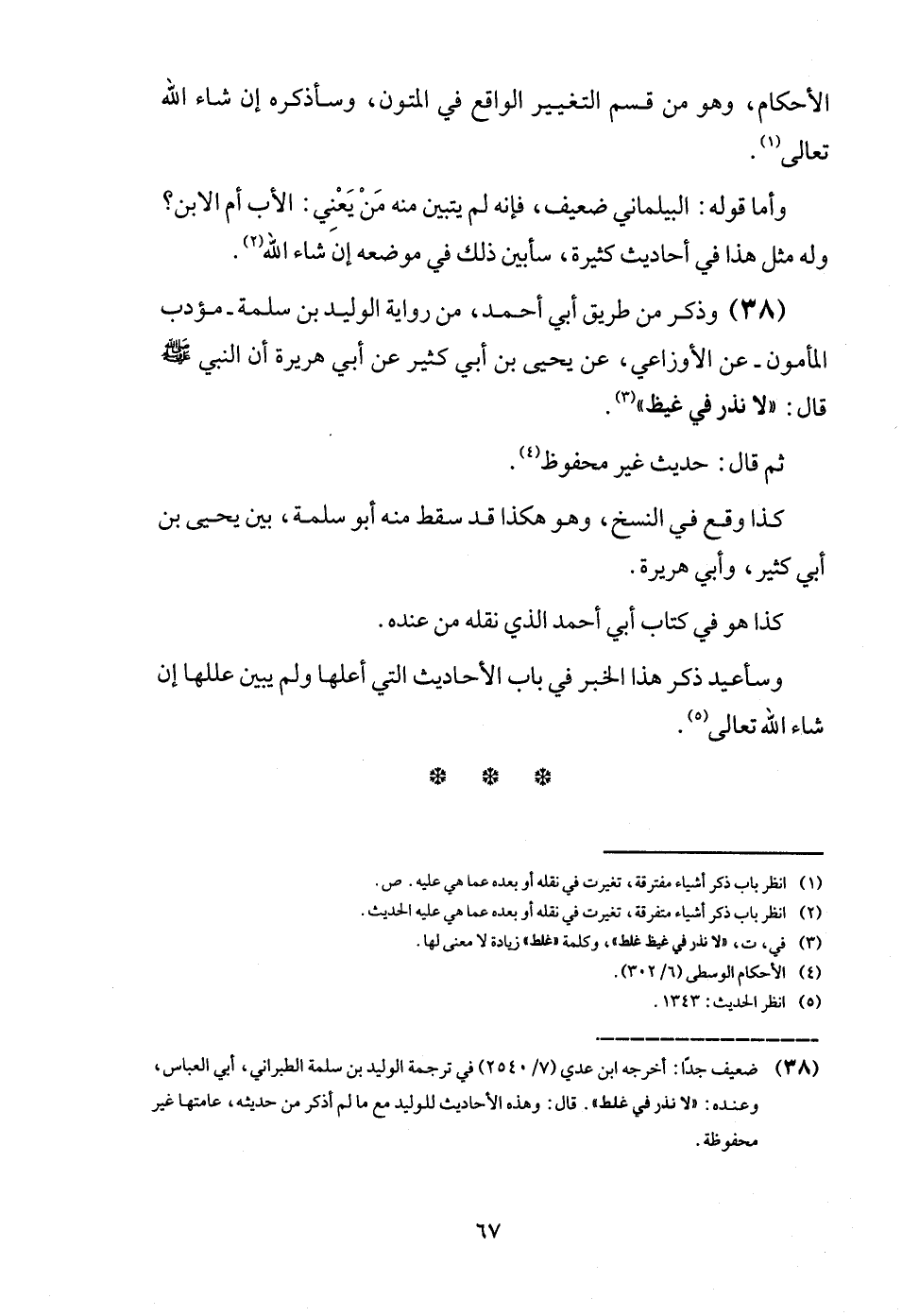 الْأَحْكَام، وَهُوَ من قسم التَّغْيِير الْوَاقِع فِي الْمُتُون، وسأذكره إِن شَاءَ الله تَعَالَى.