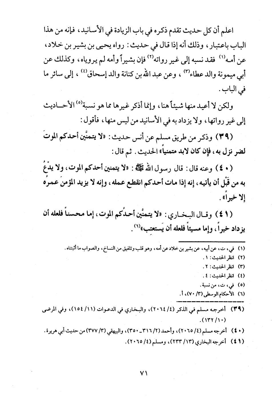 (41) وَقَالَ البُخَارِيّ: " لَا يتمنين أحدكُم الْمَوْت، إم محسناً فَلَعَلَّهُ أَن يزْدَاد خيرا، وَإِمَّا مسيئاً فَلَعَلَّهُ أَن يستعتب ".