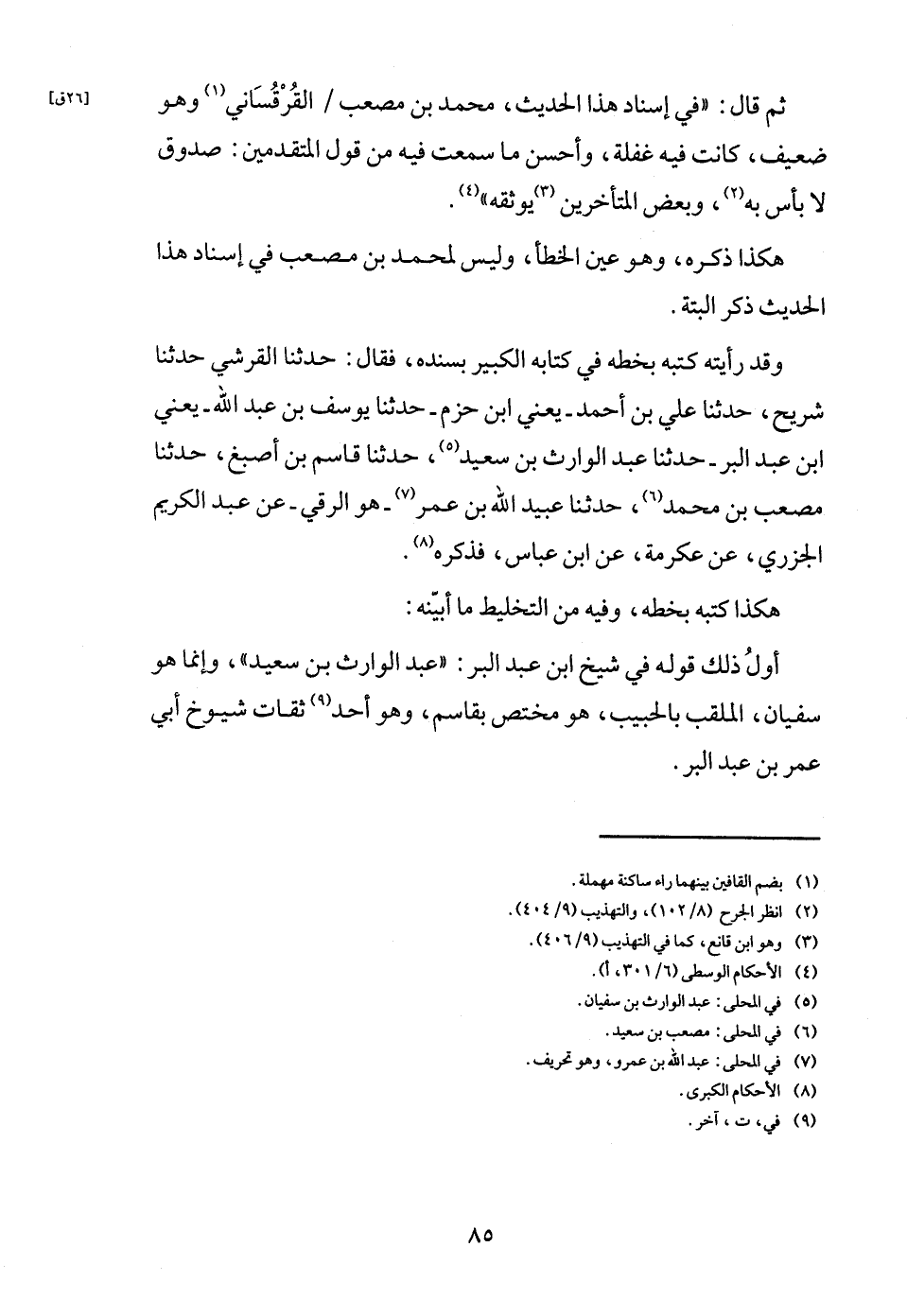 وَقد رَأَيْته كتبه بِخَطِّهِ فِي كِتَابه الْكَبِير بِسَنَدِهِ، فَقَالَ: حَدثنَا الْقرشِي حَدثنَا شُرَيْح، حَدثنَا عَليّ بن أَحْمد - يَعْنِي ابْن حزم - حَدثنَا يُوسُف بن عبد الله - يَعْنِي ابْن عبد الْبر - حَدثنَا عبد الْوَارِث بن سعيد، حَدثنَا قَاسم بن أصبغ، حَدثنَا مُصعب بن مُحَمَّد، حَدثنَا عبيد الله بن عمر - هُوَ الرقي - عَن عبد الْكَرِيم الْجَزرِي، عَن عِكْرِمَة، عَن ابْن عَبَّاس، فَذكره.