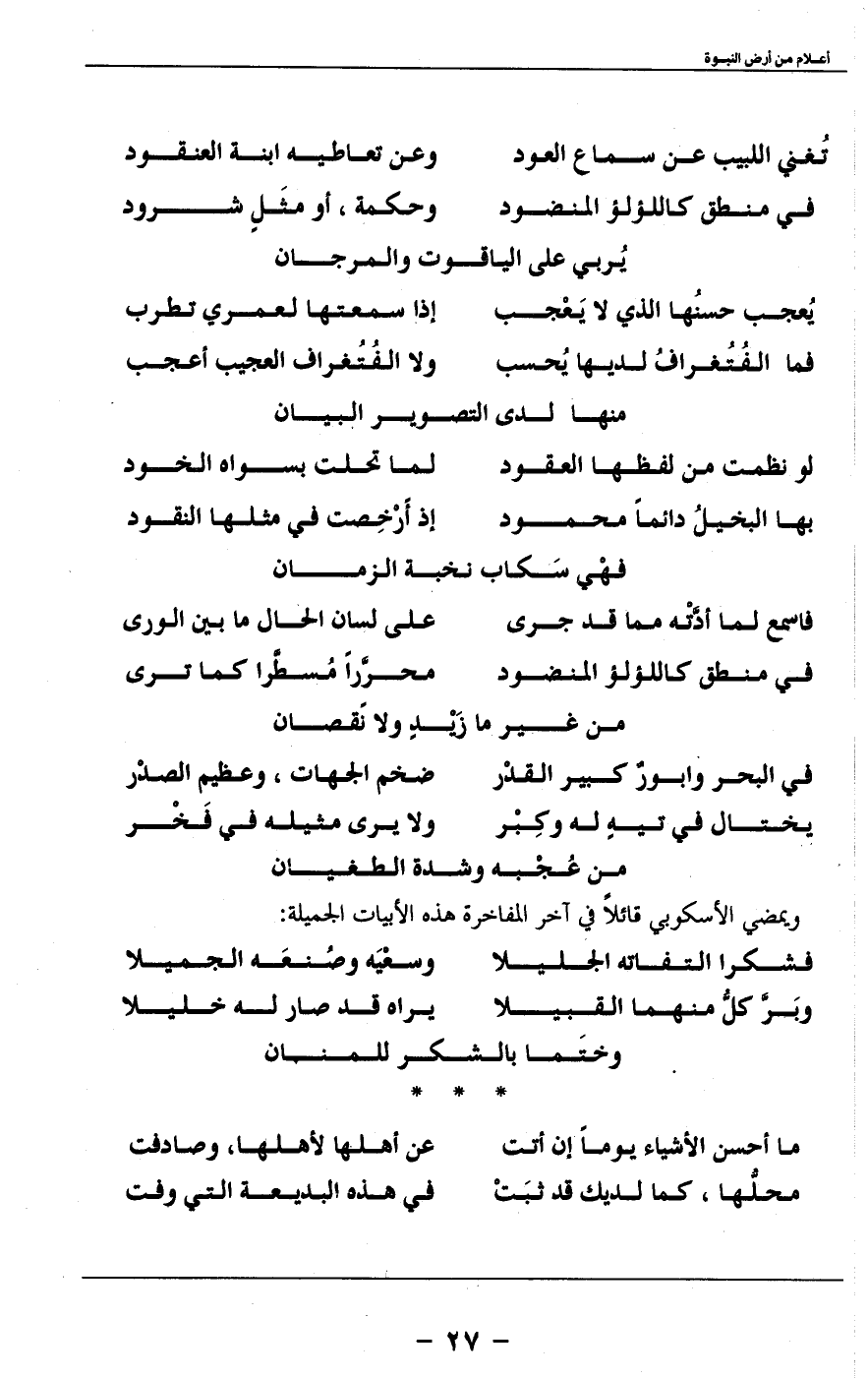 ويمضي الأسكوبي قائلاً في آخر المفاخرة هذه الأبيات الجميلة: