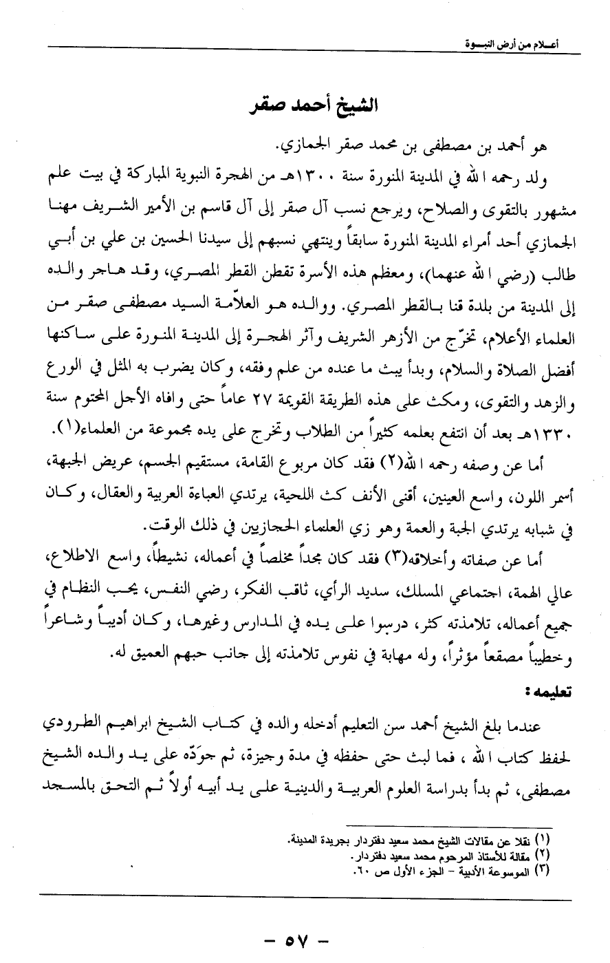 (1) نقلا عن مقالات الشيخ محمد سعيد دفتر دار بجريدة المدينة.