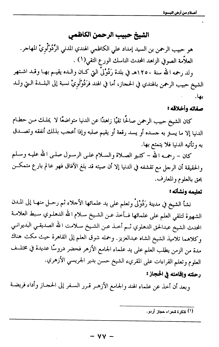 هو حبيب الرحمن بن السيد إمداد علي الكاظمي الهندي المدني الرَّدُوْلْوِيْ المهاجر. العلاّمة الصوفي الزاهد المحدث الناسك الورع التقي (1).