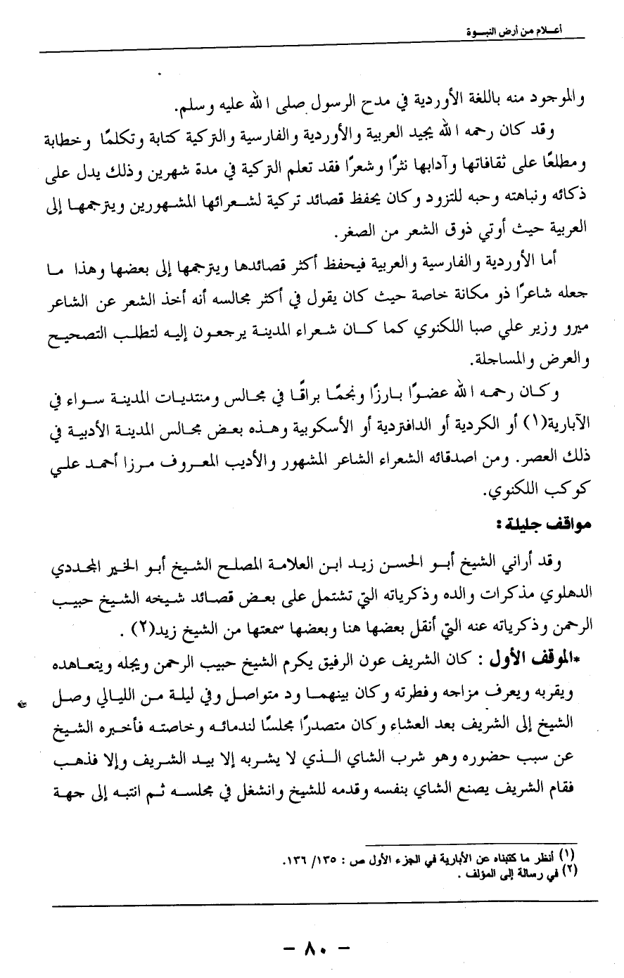 * الموقف الأول: كان الشريف عون الرفيق يكرم الشيخ حبيب الرحمن ويجله ويتعاهده ويقربه ويعرف مزاجه وفطرته وكان بينهما ود متواصل وفي ليلة من الليالي وصل الشيخ إلى الشريف بعد العشاء وكان متصدراً مجلساً لندمائه وخاصته فأخبره الشيخ عن سبب حضوره وهو شرب الشاي الذي لا يشربه إلا بيد الشريف وإلا فذهب فقام الشريف يصنع الشاي بنفسه وقدمه للشيخ وانشغل في مجلسه ثم انتبه إلى جهة ...