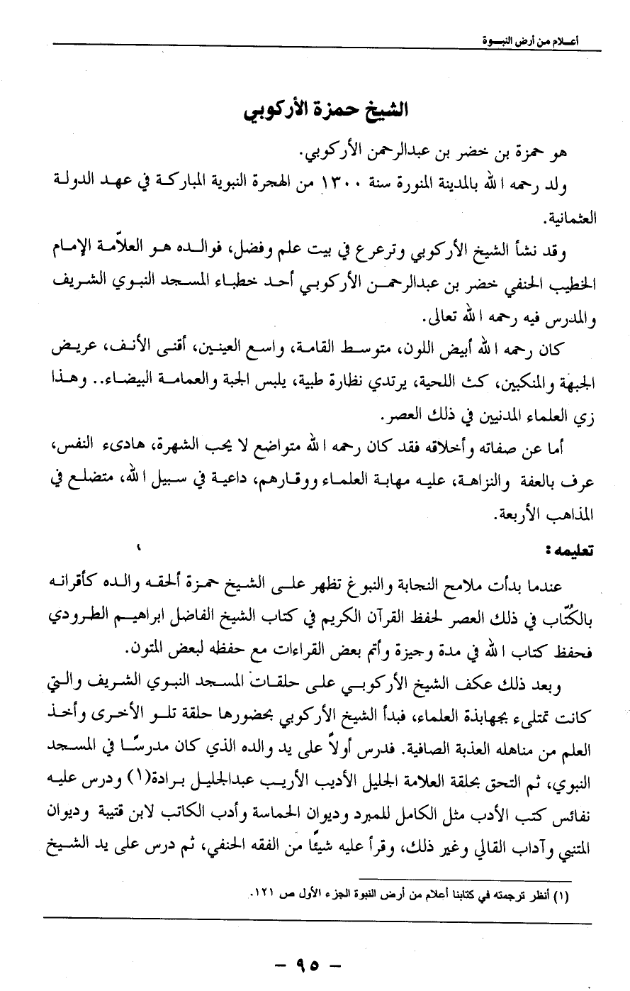 (1) انظر ترجمته في كتابنا أعلام من أرض النبوة الجزء الأول ص 121.