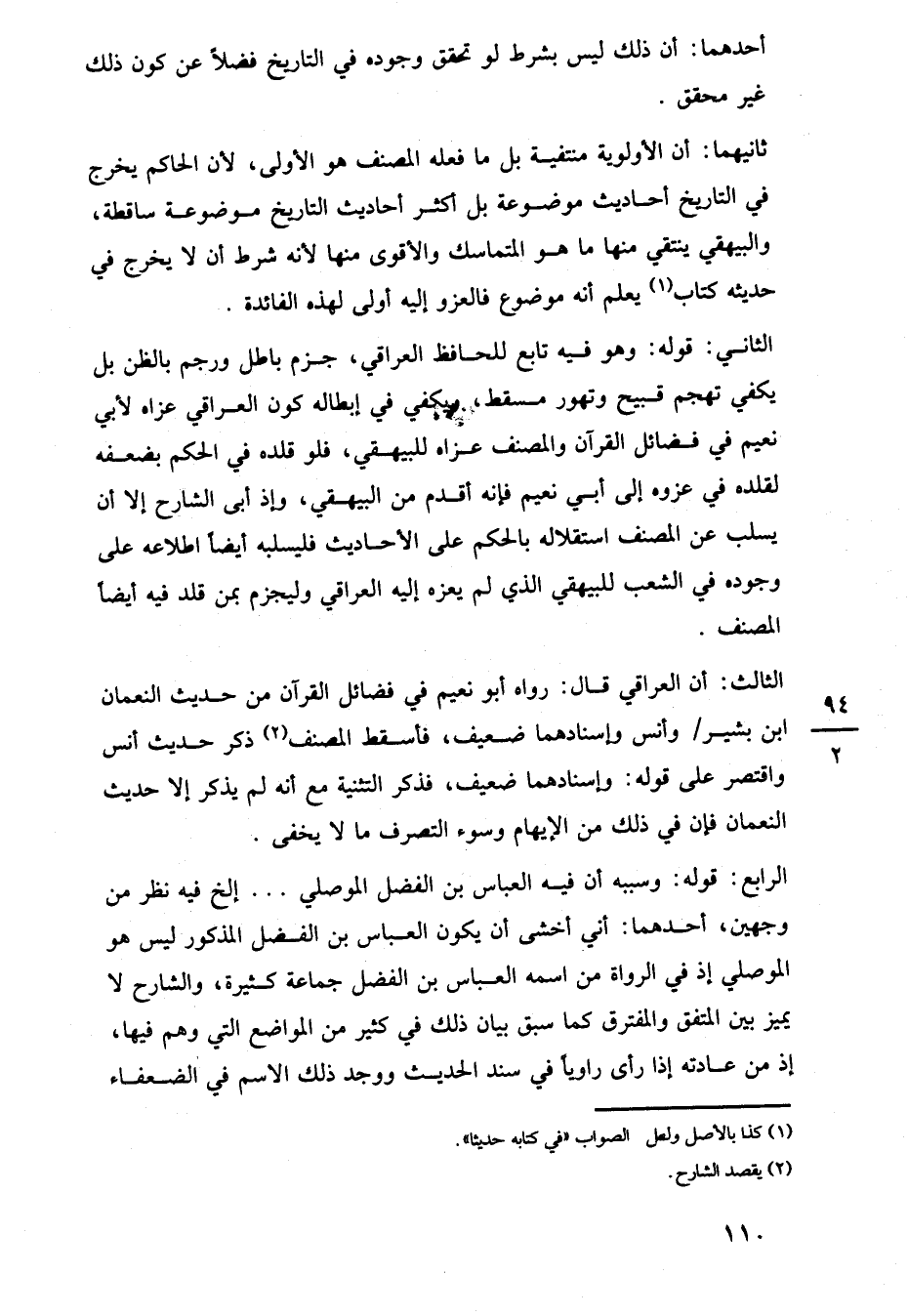 الرابع: قوله: وسببه أن فيه العباس بن الفضل الموصلي. . . إلخ فيه نظر من وجهين، أحدهما: أني أخشى أن يكون العباس بن الفضل المذكور ليس هو الموصلي إذ في الرواة من اسمه العباس بن الفضل جماعة كثيرة، والشارح لا يميز بين المتفق والمفترق كما سبق بيان ذلك في كثير من المواضع التي وهم فيها، إذ من عادته إذا رأى راويًا في سند الحديث ووجد ذلك الاسم في الضعفاء
