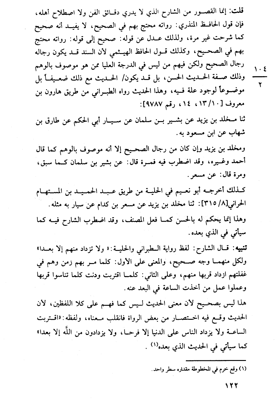 قلت: إنما القصور من الشارح الذي لا يدري دقائق الفن ولا اصطلاح أهله، فإن قول الحافظ المنذري: رواته محتج بهم في الصحيح، لا يفيد أنه صحيح كما شرحت غير مرة، ولذلك عدل عن قوله: صحيح إلى قوله: رواته محتج بهم في الصحيح، وكذلك قول الحافظ الهيثمي لأن السند قد يكون رجاله رجال الصحيح ولكن فيهم من ليس في الدرجة العليا ممن هو موصوف بالوهم وذلك صفة الحديث الحسن، بل قد يكون الحديث مع ذلك ضعيفًا بل موضوعًا لوجود علة فيه، وهذا الحديث رواه الطبراني من طريق هارون بن معروف [10/ 13، 14، رقم 9787]: