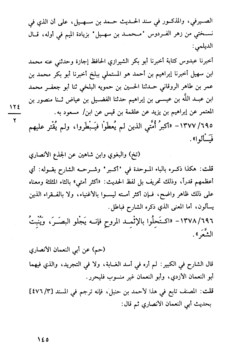 696/ 1378 - "اكتَحلُوا بالإثْمِد المروحِ فإنه يَجْلو البصَرَ، وَيُنْبِتُ الشَّعَر".