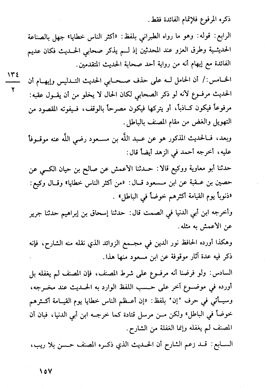حدثنا أبو معاوية ووكيع قالا: حدثنا الأعمش عن صالح بن حيان الكسي عن حصين بن عقبة عن ابن مسعود قال: "من أكثر الناس خطايا" وقال وكيع: "ذنوبًا يوم القيامة أكثرهم خوضًا في الباطل".