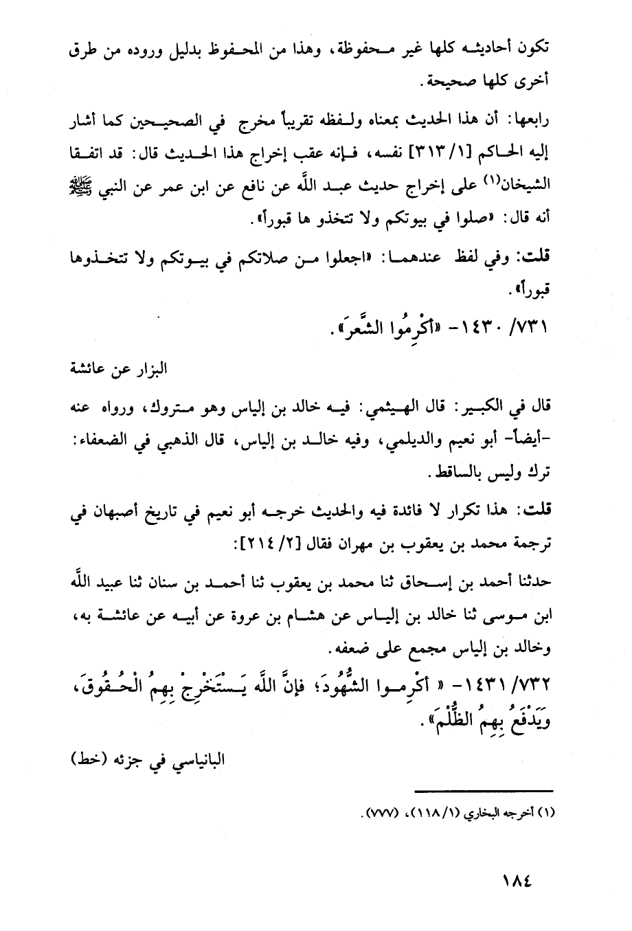 731/ 1430 - "أكْرِمُوا الشَّعرَ". البزار عن عائشة