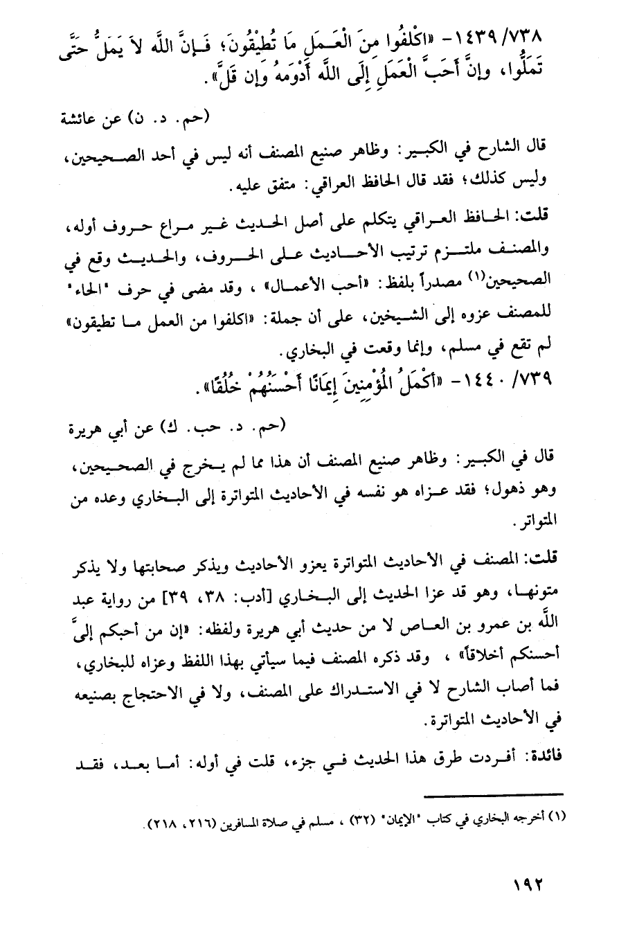 738/ 1439 - "اكْلفُوا مِنَ الْعَمَل مَا تُطيْقُونَ؛ فَإنَّ اللَّه لَا يَمَلُّ حَتَّى تَمَلُّوا، وإنَّ أحَبَّ الْعَمَلِ إِلَى اللَّه أَدْوَمهُ وَإن قَلَّ".