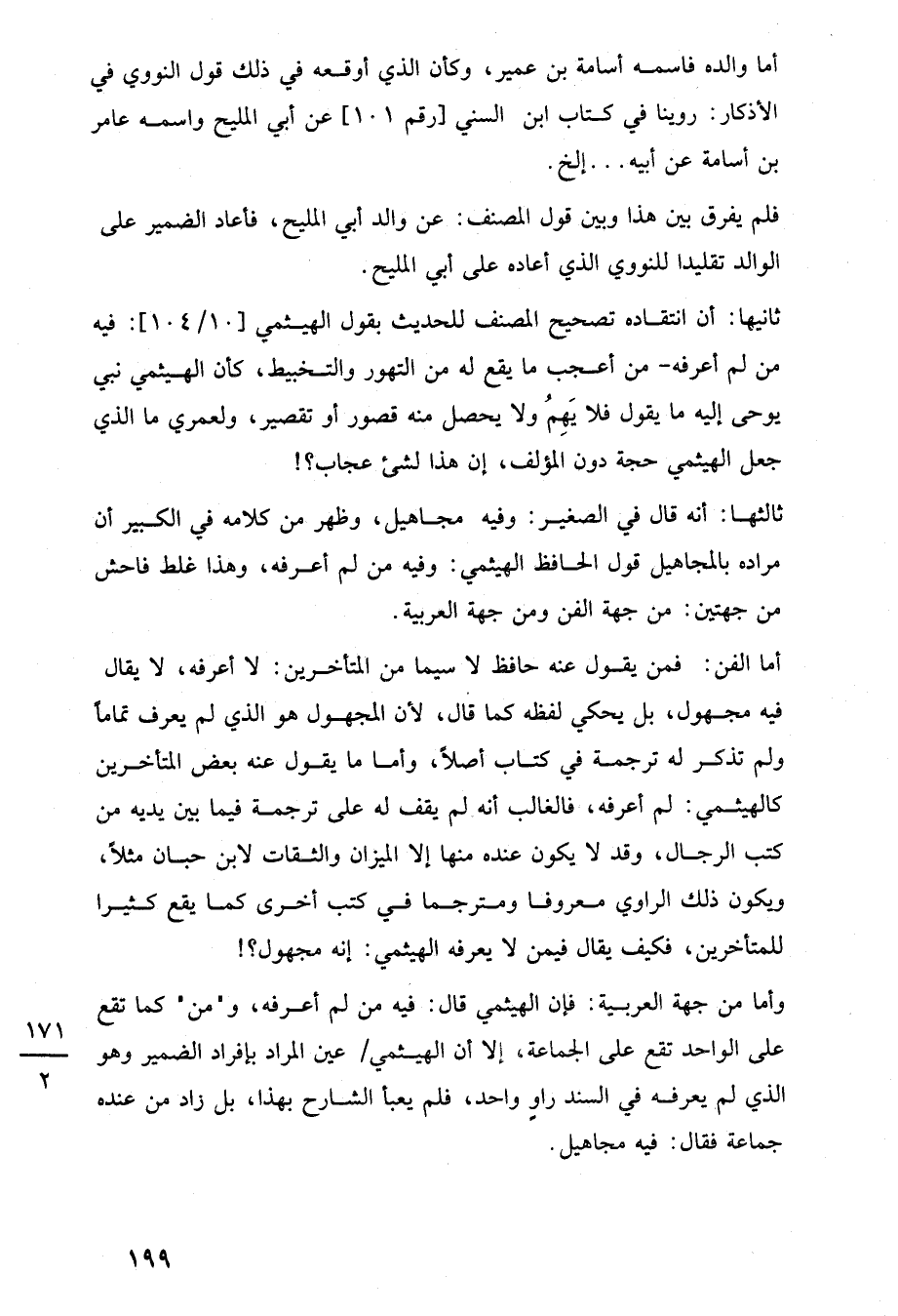 ثانيها: أن انتقاده تصحيح المصنف للحديث بقول الهيثمي [10/ 104]: فيه من لم أعرفه -من أعجب ما يقع له من التهور والتخبيط، كأن الهيثمي نبي يوحى إليه ما يقول فلا يَهِمُ ولا يحصل منه قصور أو تقصير، ولعمري ما الذي جعل الهيثمي حجة دون المؤلف، إن هذا لشيء عجاب؟!
