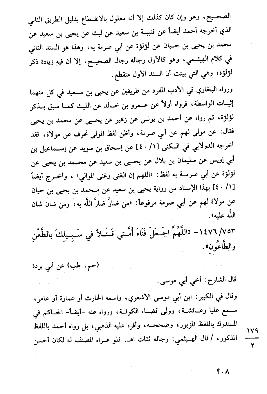 753/ 1476 - "اللَّهُمَّ اجْعَلْ فَنَاءَ أُمَّتي قَتْلًا في سَبِيِلكَ بالطَّعْنِ والطَّاعُونِ".