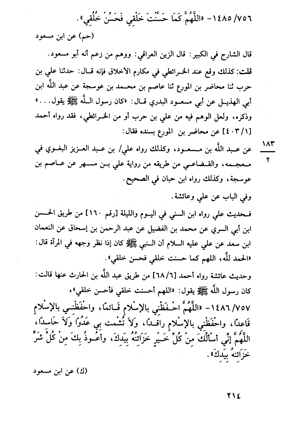 756/ 1485 - "اللَّهُمَّ كَمَا حَسَّنْتَ خَلْقِي فَحَسِّنْ خُلُقِي". (حم) عن ابن مسعود