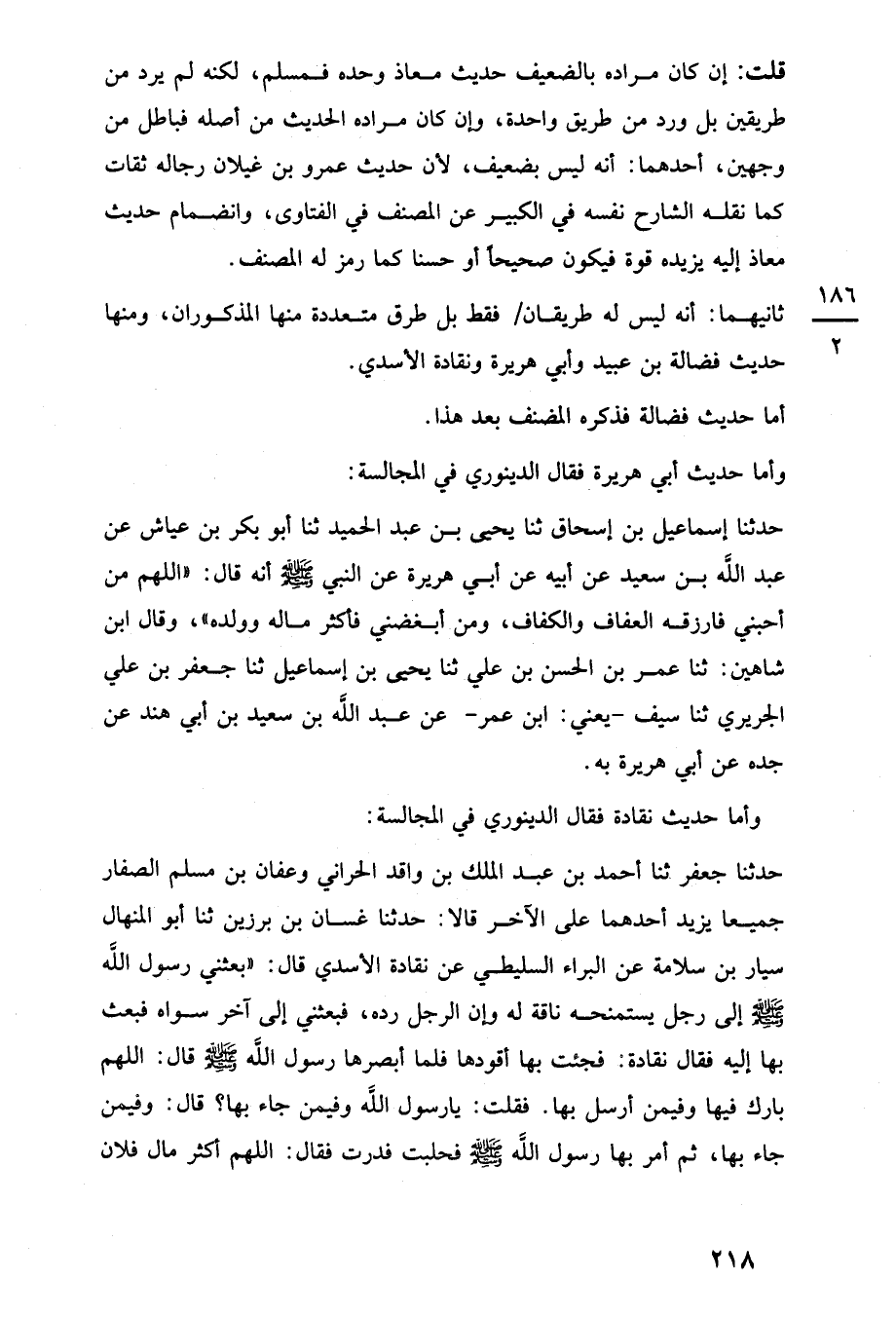 ثانيهما: أنه ليس له طريقان فقط بل طرق متعددة مها المذكوران، ومها حديث فضالة بن عبيد وأبي هريرة ونقادة الأسدي.