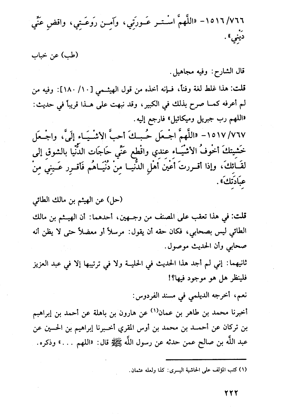 قلت: في هذا تعقب على المصنف من وجهين، أحدهما: أن الهيثم بن مالك الطائي ليس بصحابي، فكان حقه أن يقول؛ مرسلًا أو معضلًا حتى لا يظن أنه صحابي وأن الحديث موصول.