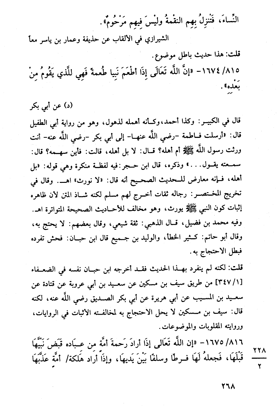 815/ 1674 - "إنَّ اللَّه تَعَالَى إِذَا أطْعَمَ نَبِيا طُعمةً فَهِي للَّذي يَقُومُ مِنْ بَعْدِهِ".