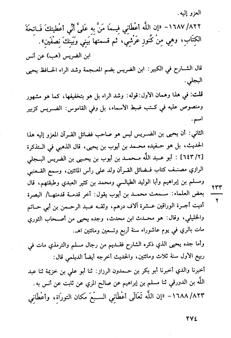 822/ 1687 - "إِنَّ اللَّهَ أعْطَانِي فِيمَا مَنَّ به عَليَّ أَنِّي أعْطيتكَ فَاتِحَةَ الكِتَابِ، وهِي مِنْ كُنوزِ عَرْشِي، ثم قسمتهَاَ بَينِي وَبَينِكَ نِصْفَينِ".