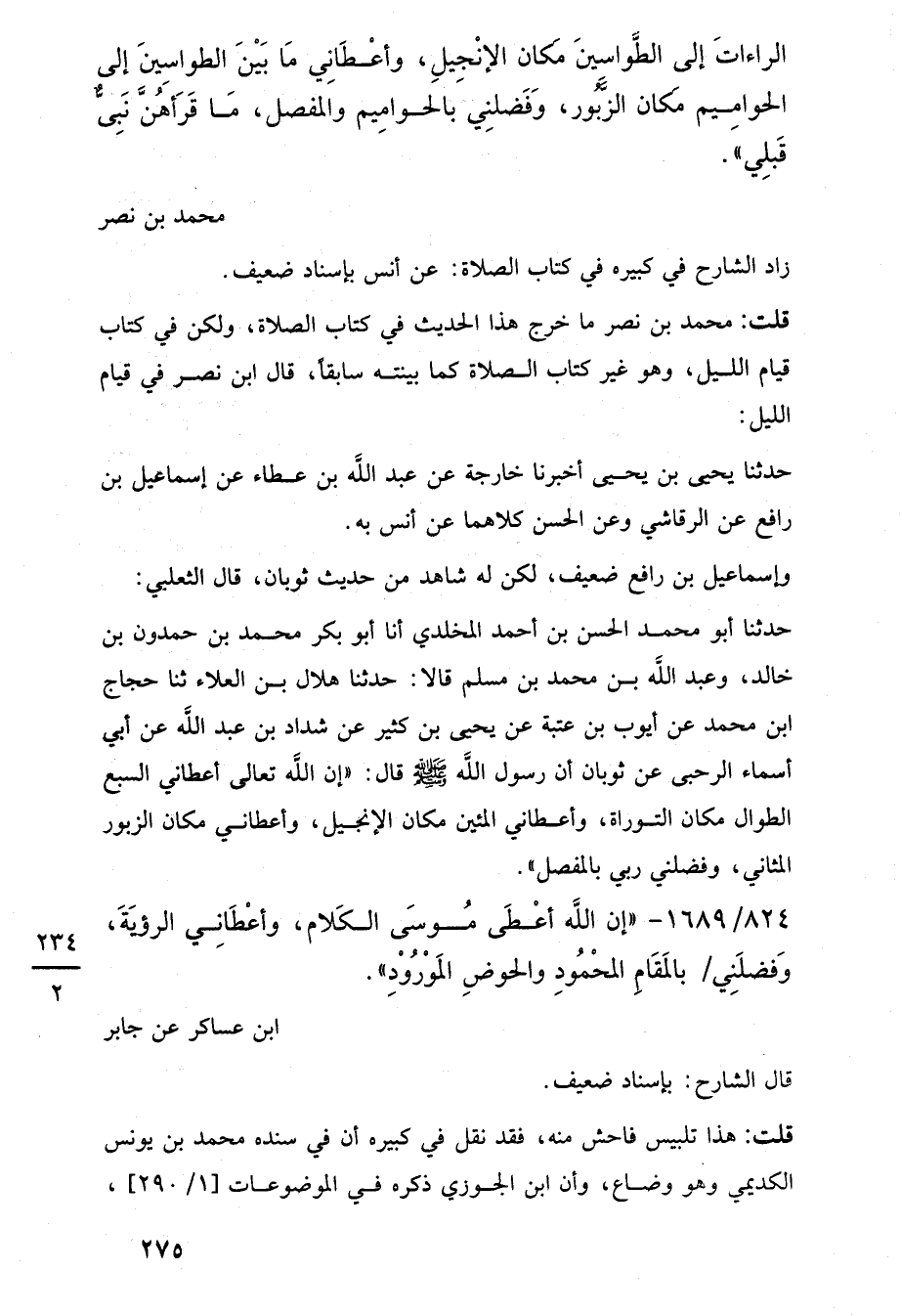 824/ 1689 - "إن اللَّه أعْطَى مُوسَى الكَلام، وأعْطَانِي الرؤيَةَ، وَفضلَنِي بالمَقَامِ المحْمُودِ والحوضِ المَوْرُوْدِ".
