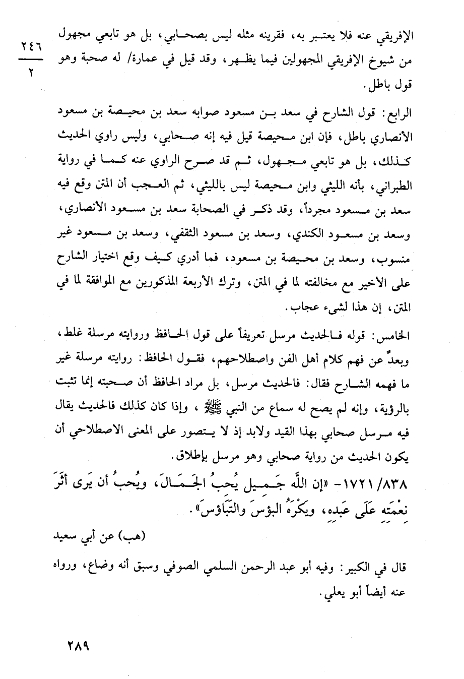 838/ 1721 - "إن اللَّه جَميل يُحبُ الجَمَالَ، ويُحبُ أن يَرى أثَرَ نِعْمَتِهِ عَلَى عَبدِهِ، ويَكْرَهُ البؤسَ والتَبَاؤسَ".