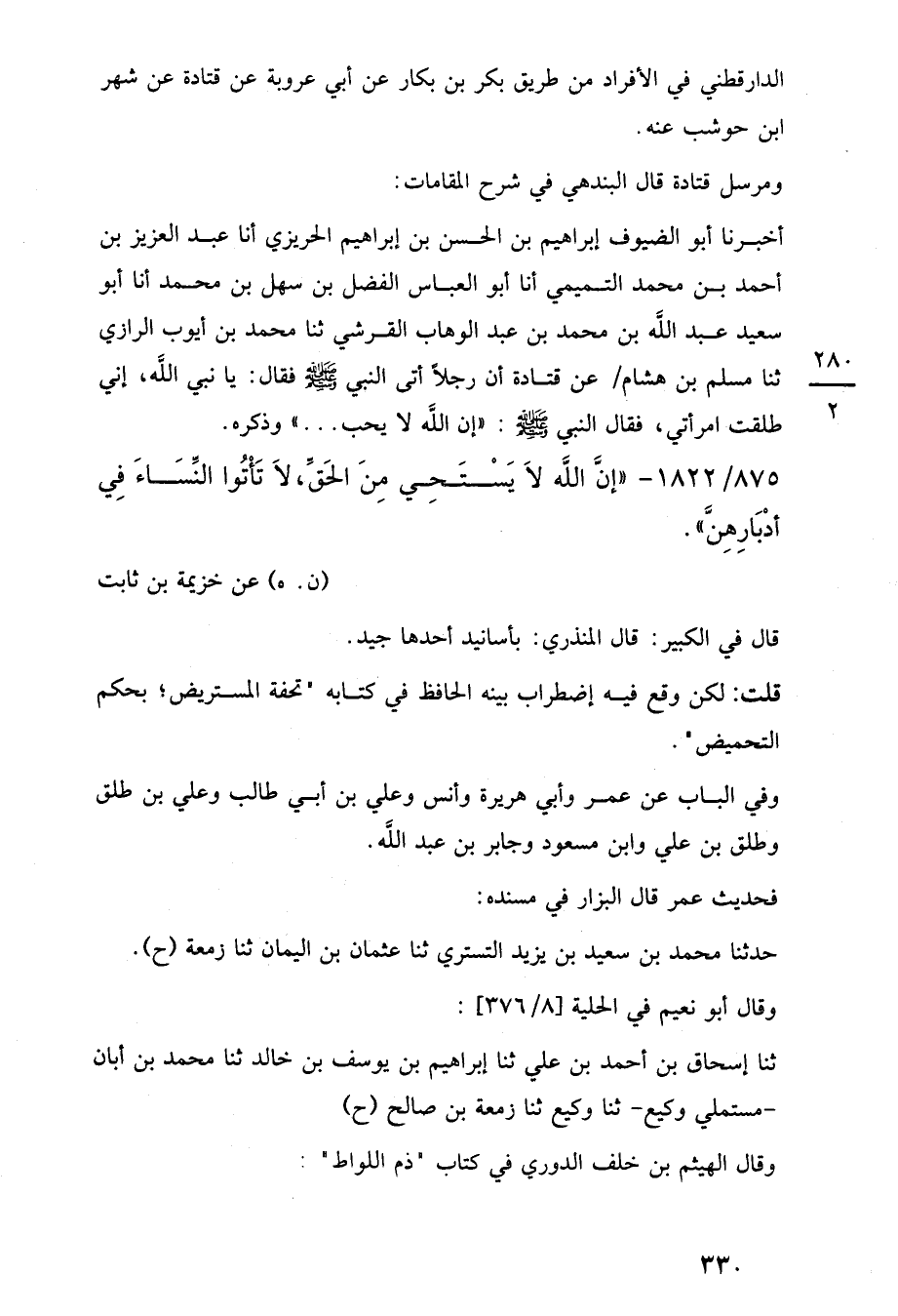 875/ 1822 - "إنَّ اللَّه لَا يَسْتَحِي مِنَ الحَقِّ، لَا تَأْتُوا النِّسَاءَ فِي أَدْبَارِهِنَّ".