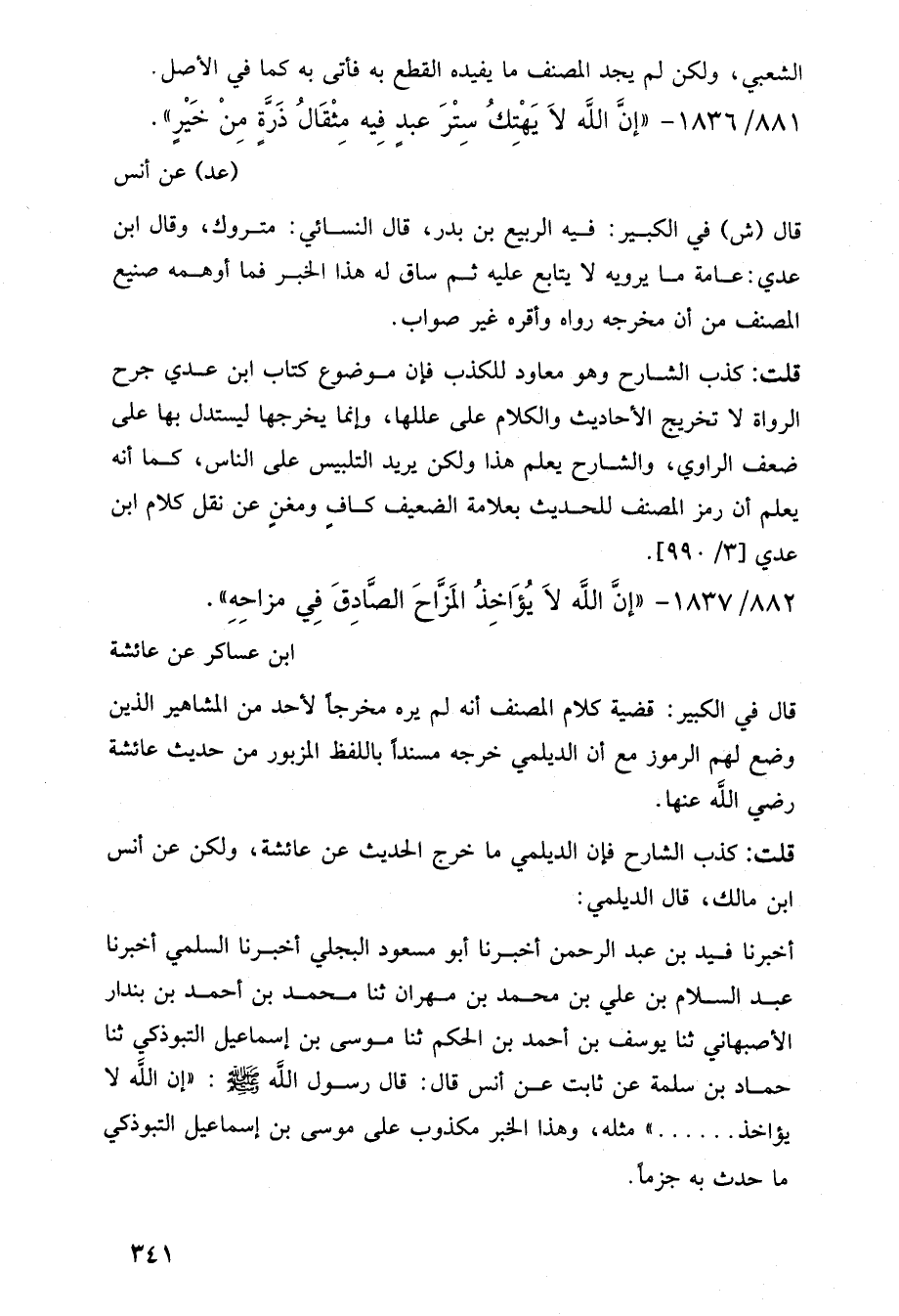 قلت: كذب الشارح وهو معاود للكذب فإن موضوع كتاب ابن عدي جرح الرواة لا تخريج الأحاديث والكلام على عللها، وإنما يخرجها ليستدل بها على ضعف الراوي، والشارح يعلم هذا ولكن يريد التلبيس على الناس، كما أنه يعلم أن رمز المصنف للحديث بعلامة الضعيف كاف ومغني عن نقل كلام ابن عدي [3/ 990].