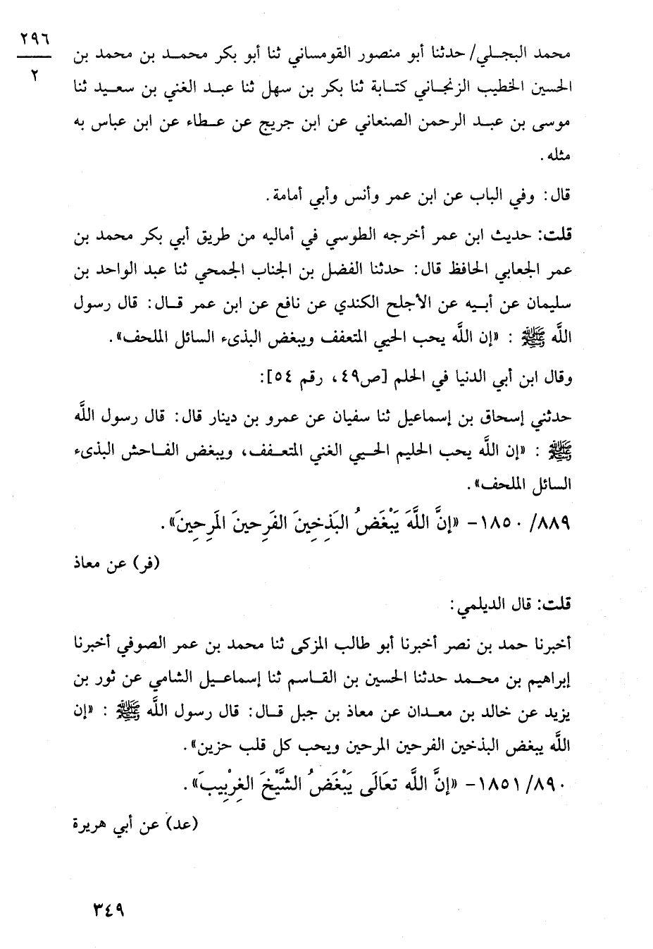 889/ 1850 - "إنَّ اللَّه يَبْغَضُ البَذِخِينَ الفَرِحينَ المَرِحِينَ". (فر) عن معاذ
