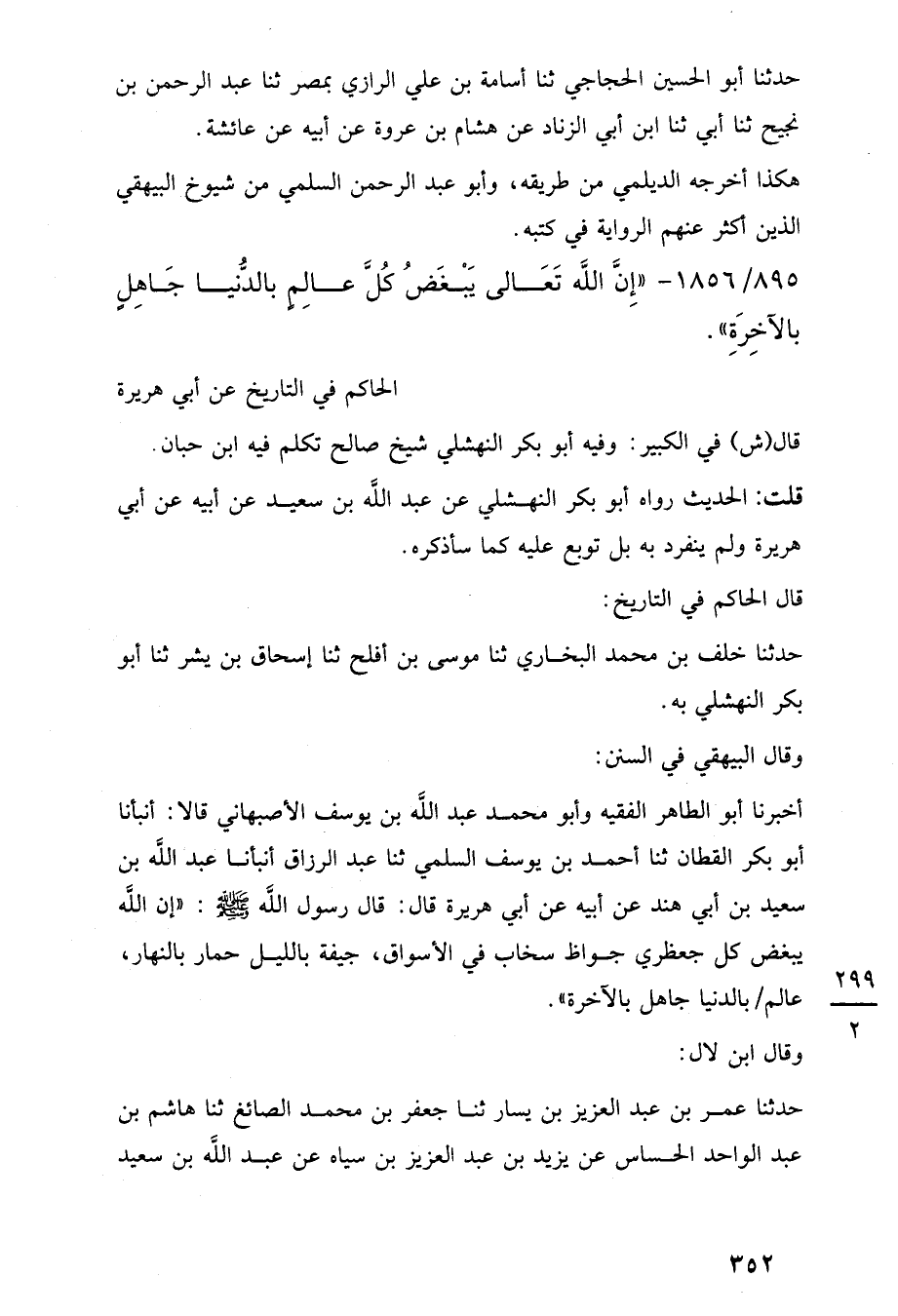 895/ 1856 - "إِنَّ اللَّه تَعَالى يَبْغَضُ كُلَّ عالِمٍ بالدُّنيا جَاهِلٍ بالآخِرَةِ".