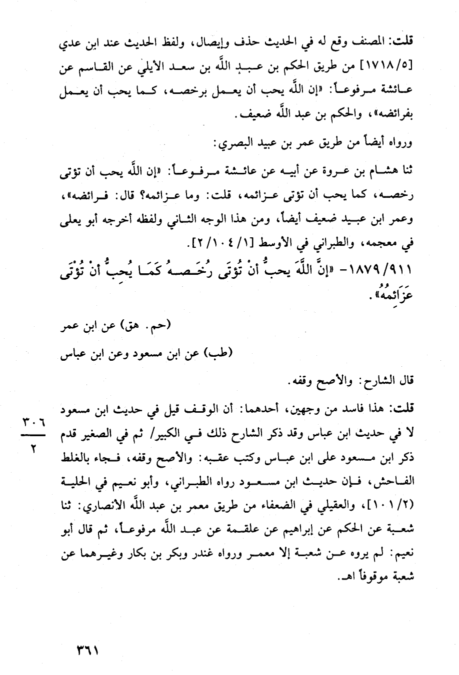 911/ 1879 - "إنَّ اللَّه يحبُ أنْ تُؤتَى رُخَصهُ كَمَا يُحِبُّ أنْ تُؤْتَى عَزَائِمُهُ".