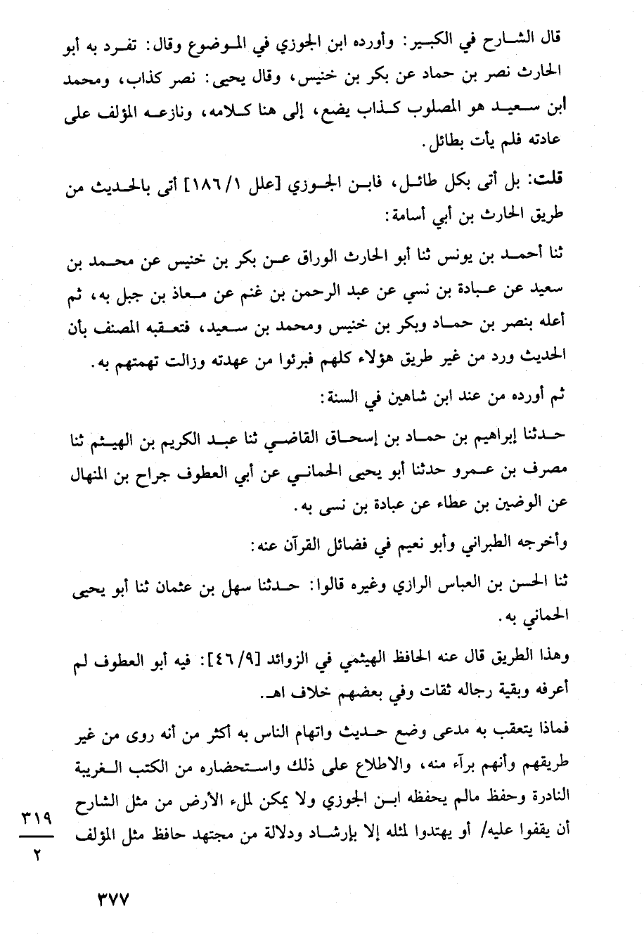 فماذا يتعقب به مدعى وضع حديث واتهام الناس به أكثر من أنه روى من غير طريقهم وأنهم برآء منه، والاطلاع على ذلك واستحضاره من الكتب الغريبة النادرة وحفظ ما لم يحفظه ابن الجوزي ولا يمكن لملء الأرض من مثل الشارح أن يقفوا عليه أو يهتدوا لمثله إلا بإرشاد ودلالة من مجتهد حافظ مثل المؤلف