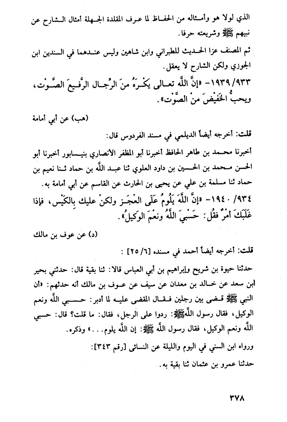 933/ 1939 - "إِنَّ اللَّه تعالى يَكْرَهُ منَ الرِّجال الرَّفيعَ الصَّوْت، ويحبُّ الخَفيْضَ من الصَّوْت".
