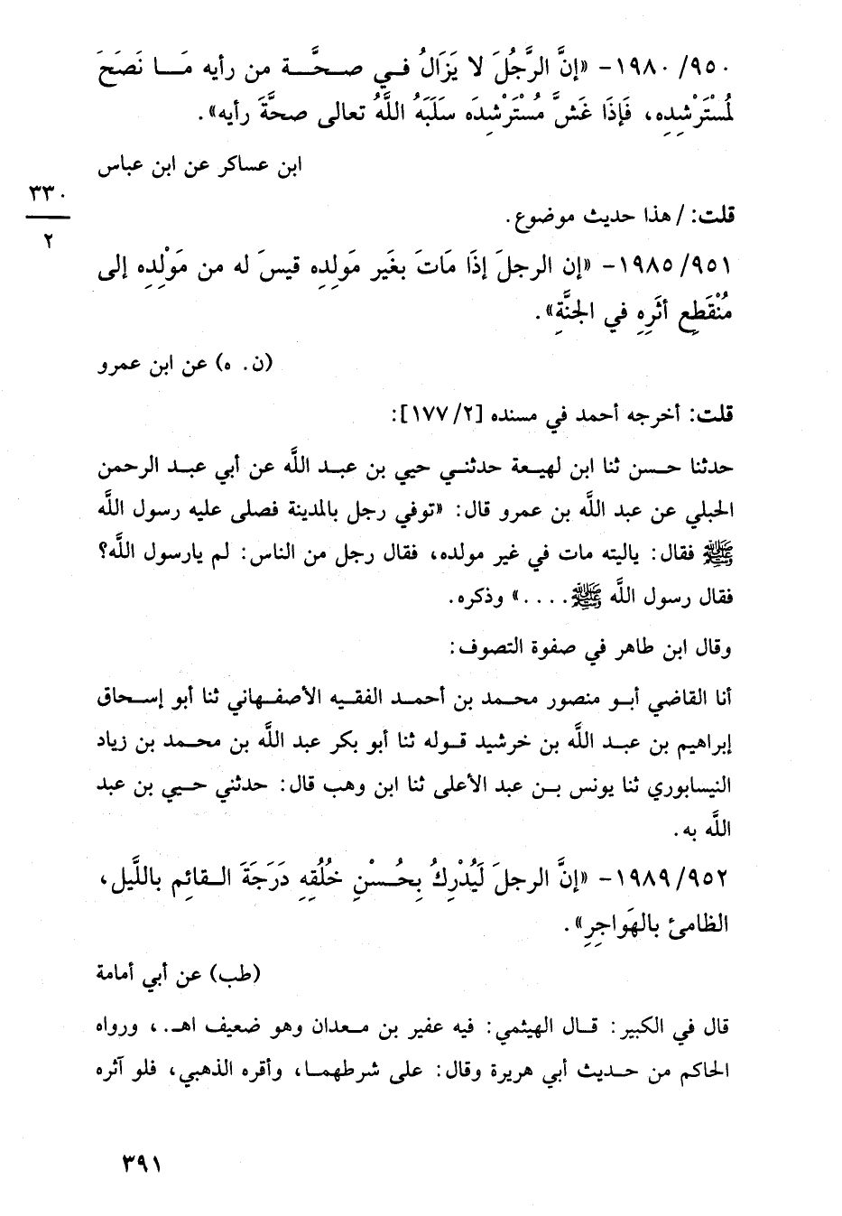 952/ 1989 - "إنَّ الرجلَ لَيُدرِكُ بِحُسْنِ خُلُقِهِ دَرَجَةَ القائِم باللَّيل، الظامئ بالهَواجِرِ".