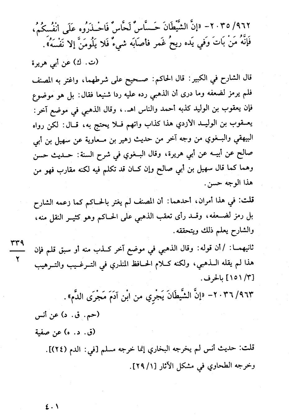 963/ 2036 - "إنَّ الشَّيطَانَ يَجْرِي من ابْن آدَمَ مَجْرَى الدَّم".