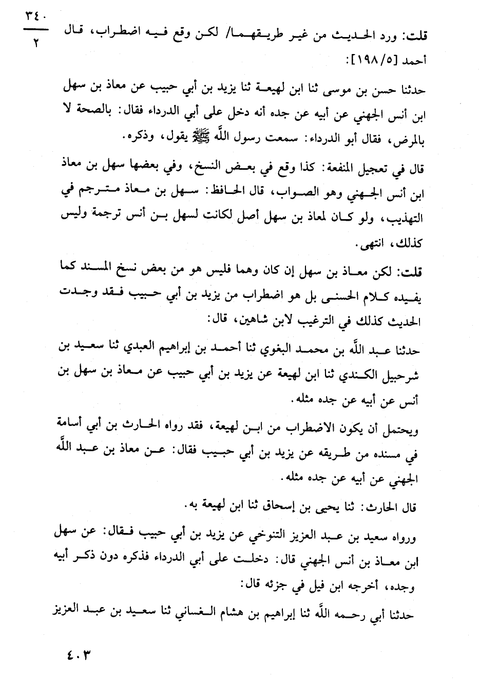 قال في تعجيل المنفعة: كذا وقع في بعض النسخ، وفي بعضها سهل بن معاذ ابن أنس الجهني وهو الصواب، قال الحافظ: سهل بن معاذ مترجم في التهذيب، ولو كان لمعاذ بن سهل أصل لكانت لسهل بن أنس ترجمة وليس كذلك، انتهى.