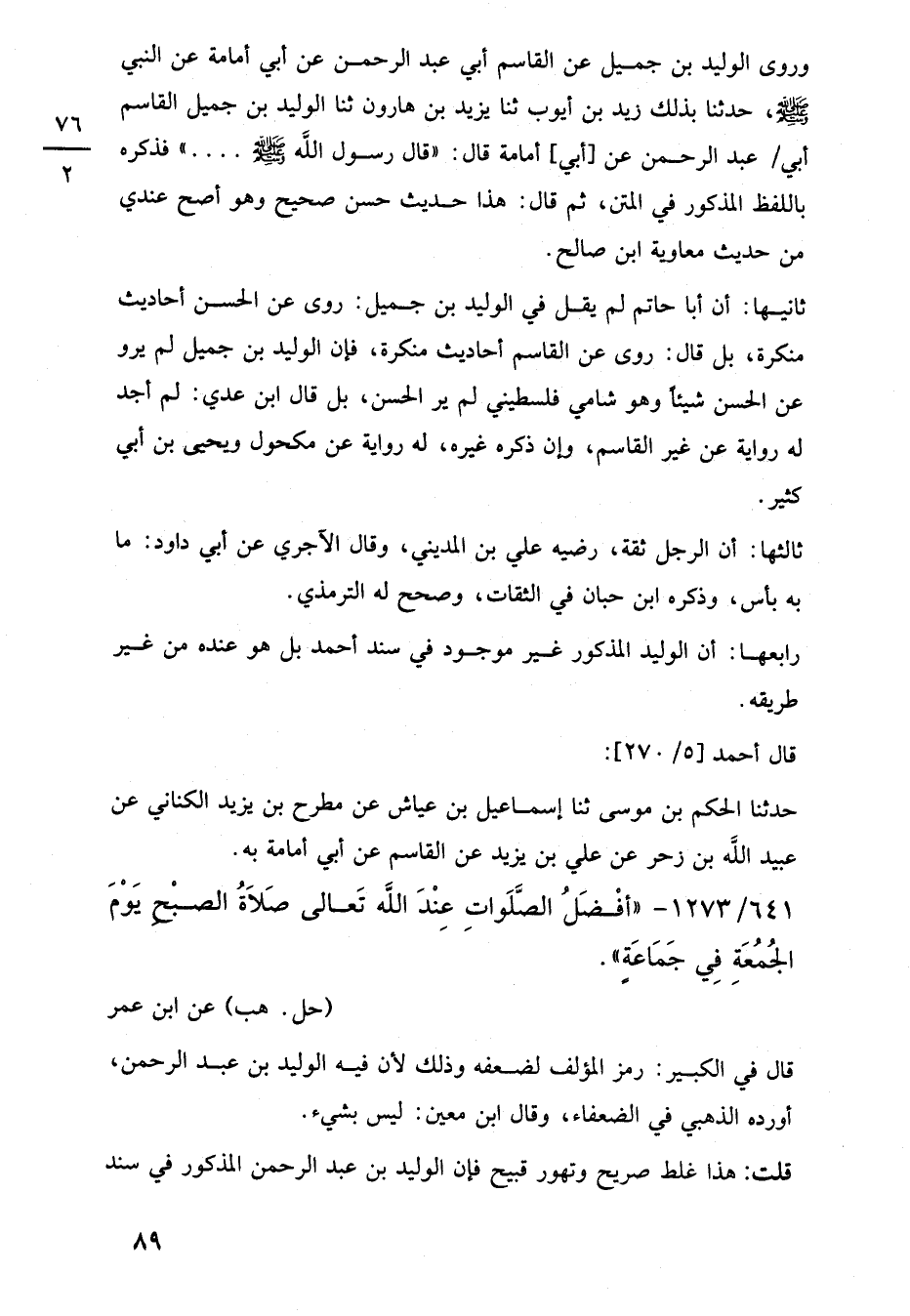 641/ 1273 - "أَفْضَلُ الصَّلَواتِ عِنْدَ اللَّه تَعالى صَلَاةُ الصبْحِ يَوْمَ الجُمُعَةِ في جَمَاعَةٍ".