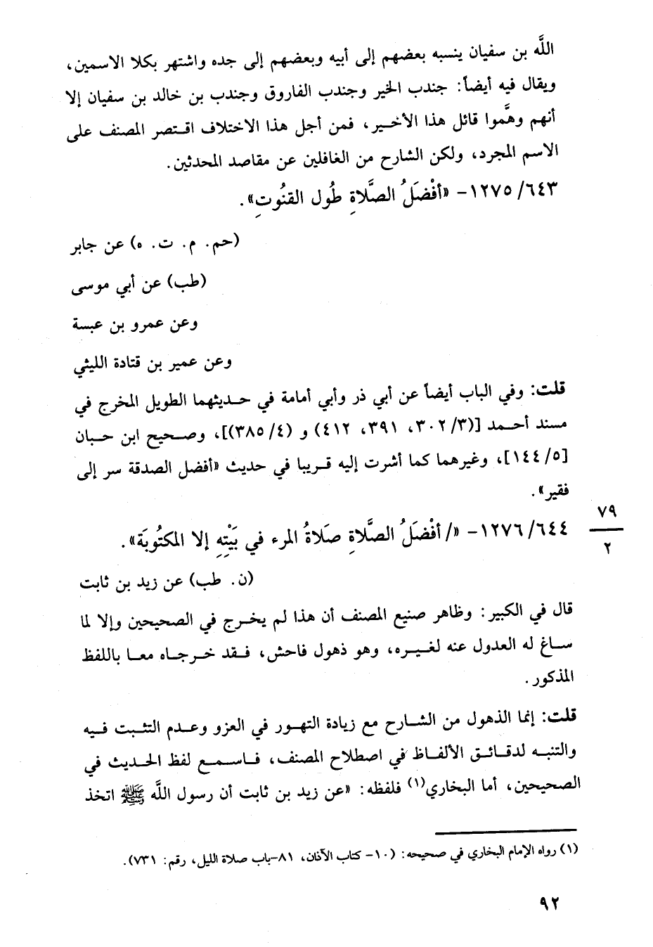643/ 1275 - "أَفْضَلُ الصَّلاةِ طُول القنُوتِ".