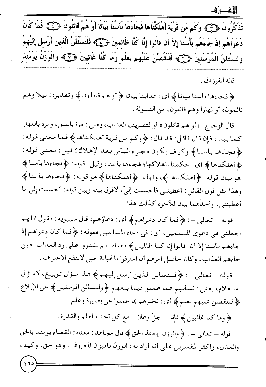 {تذكرُونَ (3) وَكم من قَرْيَة أهلكناها فَجَاءَهَا بأسنا بياتاً أَو هم قَائِلُونَ (4) فَمَا كَانَ دَعوَاهُم إِذْ جَاءَهُم بأسنا إِلَّا أَن قَالُوا إِنَّا كُنَّا ظالمين (5) فلنسئلن الَّذين أرسل إِلَيْهِم ولنسئلن الْمُرْسلين (6) فلنقصن عَلَيْهِم بِعلم وَمَا كُنَّا غائبين (7) وَالْوَزْن يَوْمئِذٍ}