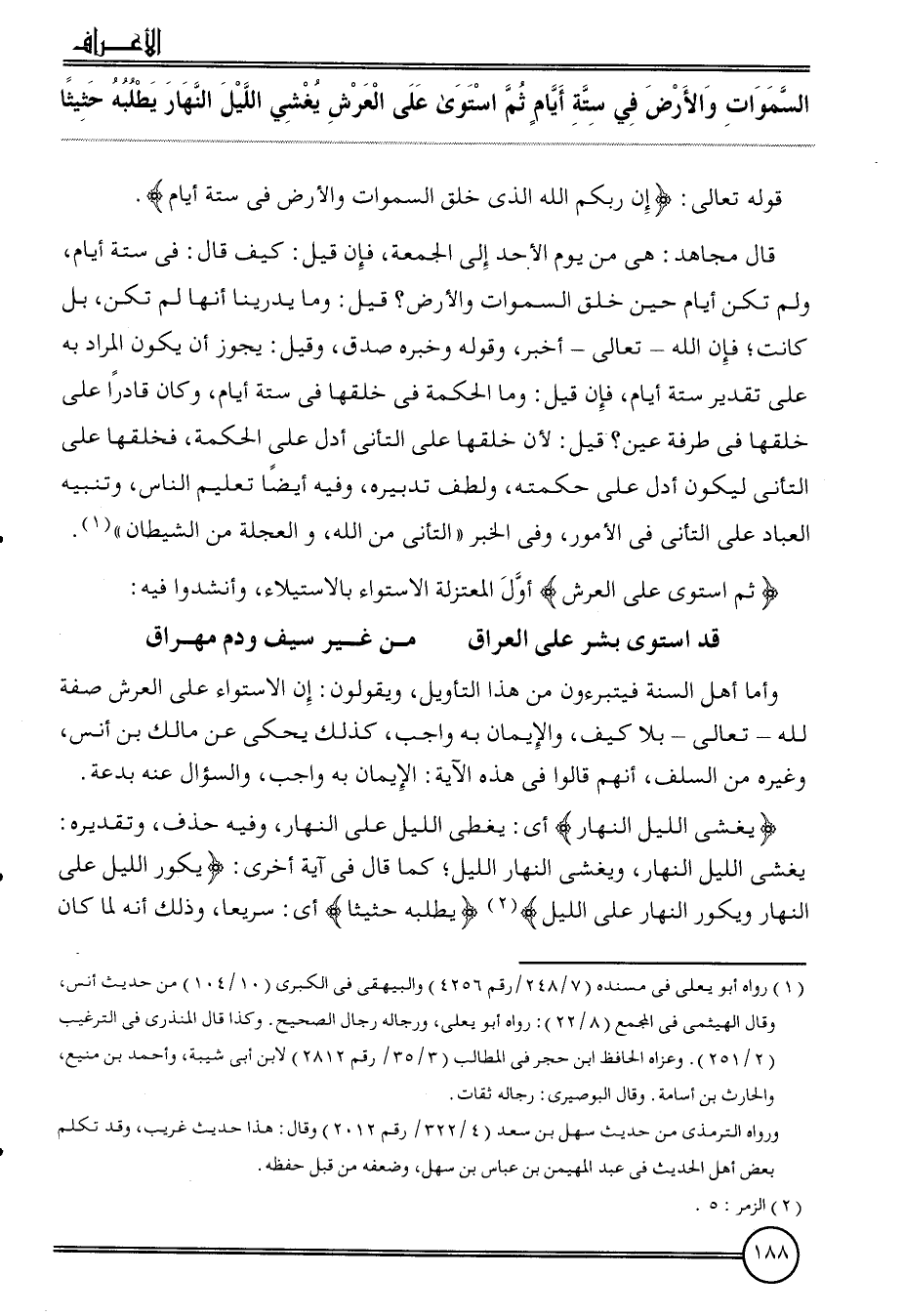 {السَّمَوَات وَالْأَرْض فِي سِتَّة أَيَّام ثمَّ اسْتَوَى على الْعَرْش يغشي اللَّيْل النَّهَار يَطْلُبهُ حثيثا}