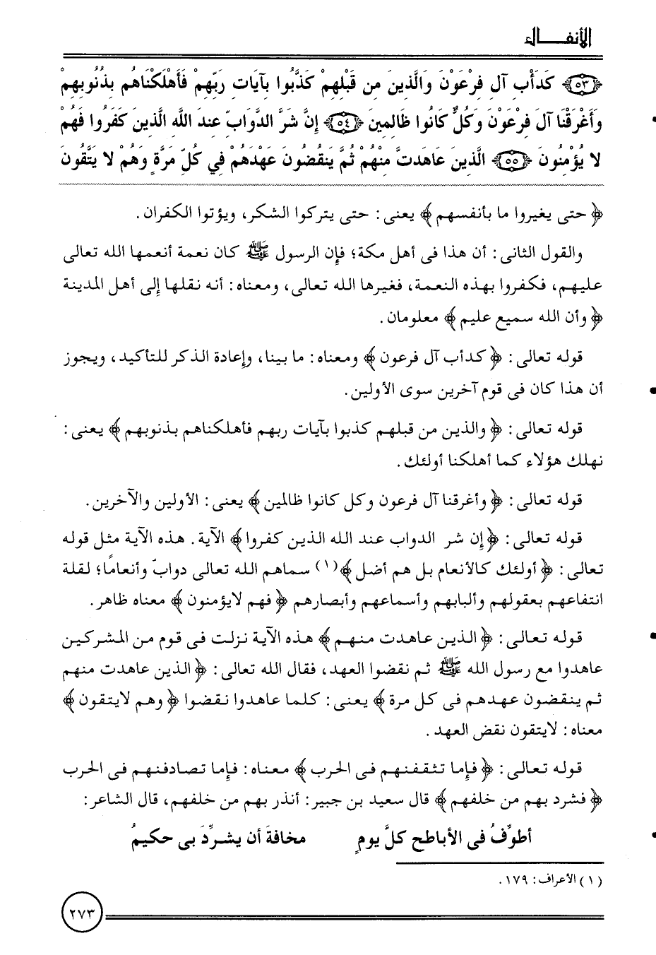 ( {53) كدأب آل فِرْعَوْن وَالَّذين من قبلهم كذبُوا بآيَات رَبهم فأهلكناهم بِذُنُوبِهِمْ وأغرقنا آل فِرْعَوْن وكل كَانُوا ظالمين (54) إِن شَرّ الدَّوَابّ عِنْد الله الَّذين كفرُوا فهم لَا يُؤمنُونَ (55) الَّذين عَاهَدت مِنْهُم ثمَّ ينقضون عَهدهم فِي كل مرّة وهم لَا يَتَّقُونَ} {حَتَّى يُغيرُوا مَا بِأَنْفسِهِم} يَعْنِي: حَتَّى يتْركُوا الشُّكْر، ويؤتوا الكفران.